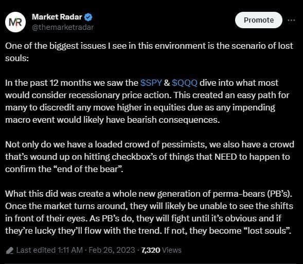 The trade of lost souls was predicated around the idea that the economy priced things in way too quickly and there was room to “bounce” with sentiment so poor and people positioned so bearishly. The term “lost souls” comes from the idea that many wouldn’t be able to believe what they were about to see, and fight the move all the way through. The TOLS consists of equities going UP, bonds CHOPPING, and the dollar going DOWN. - Aka Stage 1+2 (where the economy doesn’t experience a recession and rate hikes are still yet to be felt). TOLS is what fuels the idea of a “soft landing” becoming a reality, specifically as you pivot through Stage 2 and into 3. Stage 3 is where soft landing euphoria peaks, before cycling through the last quarter of the program (Stage 4).