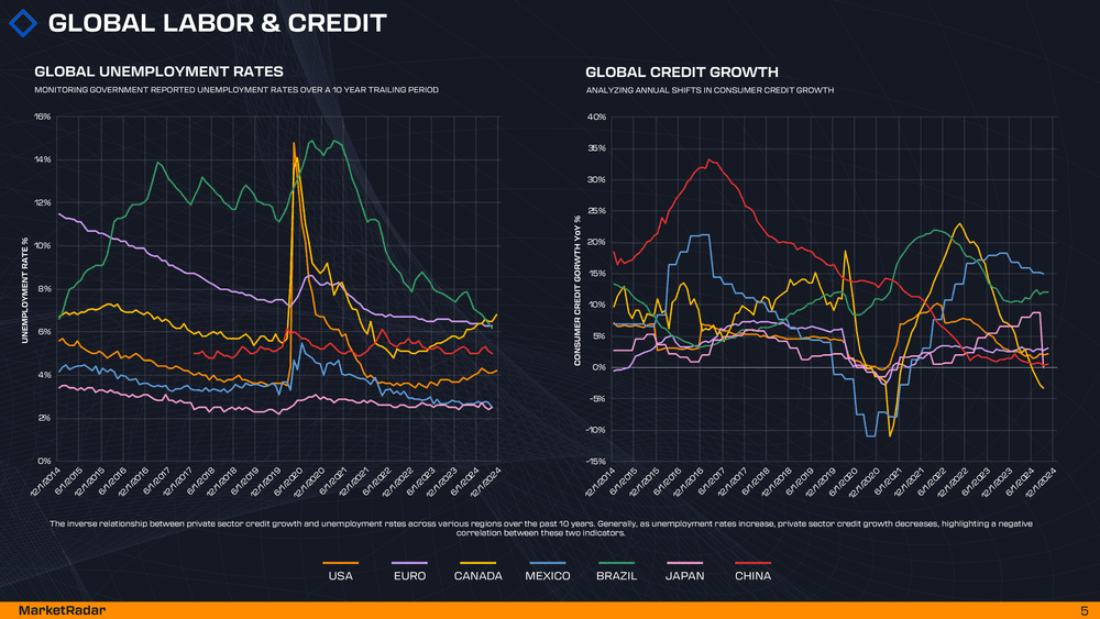 Globally, the landscape varies. The United States appears relatively balanced, while Brazil and Japan continue on hawkish monetary paths as credit growth remains elevated. Meanwhile, Canada is experiencing outright credit contractions and persistent dovish monetary policy.