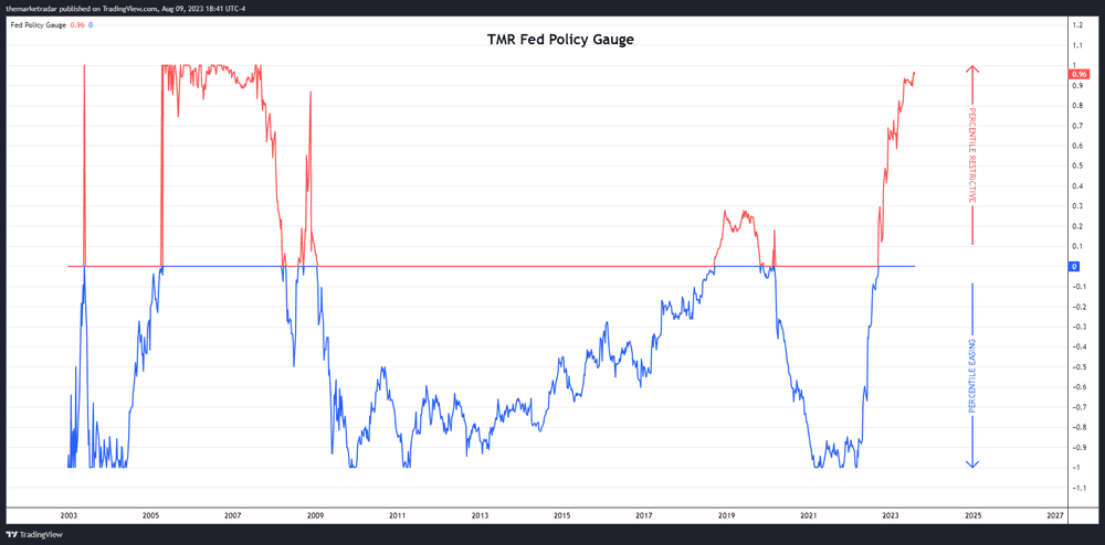 Our Fed Policy Gauge is in the 96th percentile of restrictiveness going back to 2003. Despite claims of easing conditions, the Fed is very restrictive in regard to forward inflation expectations. With the Fed merely holding rates here and inflation expectations becoming more controlled, the real policy at the Fed will continue to expand...adding further restrictiveness to the economy.
