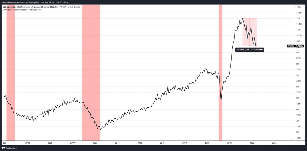 Employment tends to come up as one of the most lagging parts of the economy. Meaning, it's the last to be affected. However, Job Openings are down over 20% from their post-pandemic highs...signaling that something is afoot and things are certainly slowing. Typically, for unemployment to accelerate, you have to clear out excess job openings. This is more evidence that while the unemployment rate hasn't budged, things are shaking up beneath the surface.